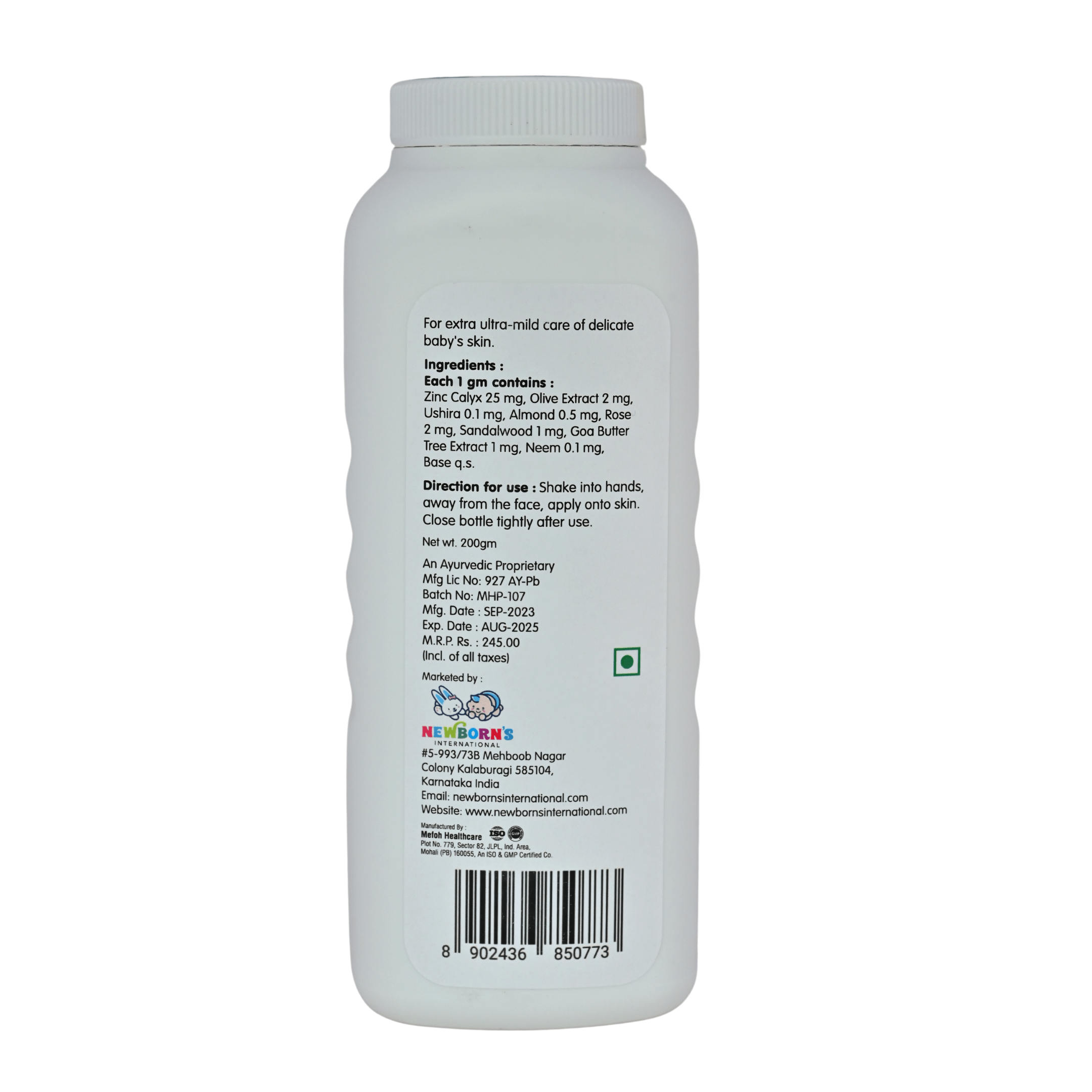 Introducing our Newborn Baby Powder, a specially crafted formula designed to provide gentle care for your precious little one. As parents, we understand the importance of providing your newborn with the gentlest care, and our chemical-free formula is crafted to meet the highest standards of quality.